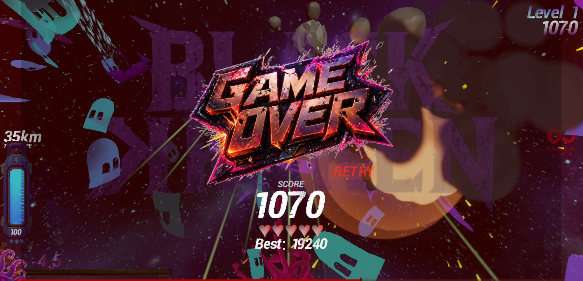 - Fast arcade survival gameplay